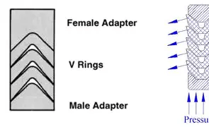 - Misalignment of rings: If the male/female adapters or intermediate V-rings are not properly aligned, the seal stack may bind or leak.